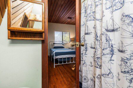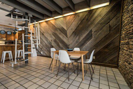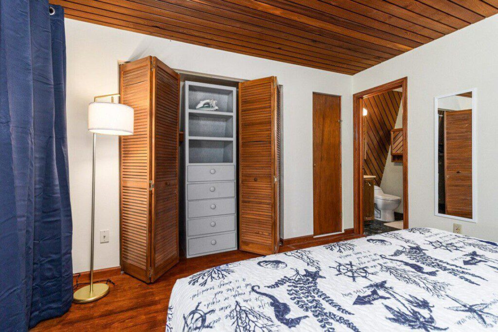 This local landmark is affectionately known as the Perdido A-frame. When we found the home in its previous condition, we knew it needed a little love to live up to its full glory! The nautical theme has been carefully curated to accentuate the eccentric features of our home, such as the Chicago brick floors, corkboard walls and wood plank ceilings.